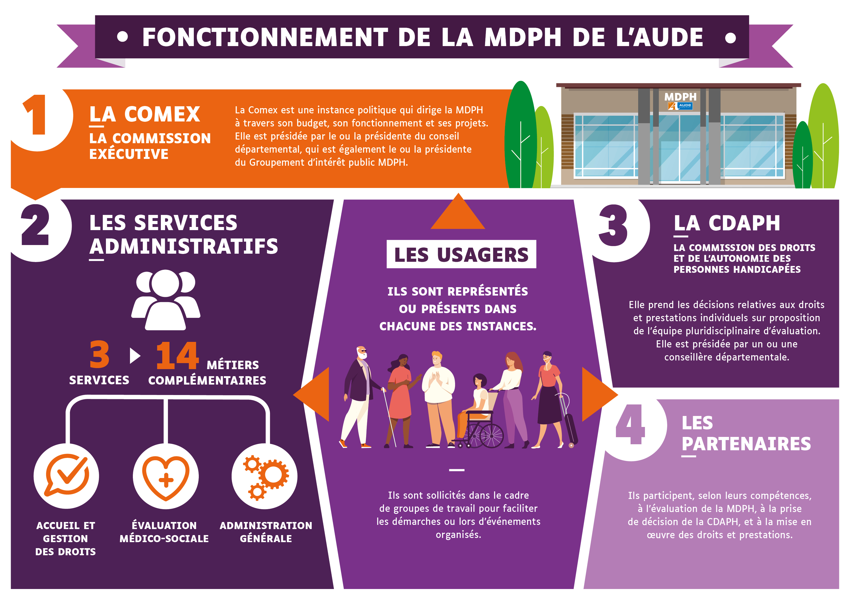 Au-delà des services administratifs, la MDPH est composée de trois autres instances, tout aussi importantes à son fonctionnement.