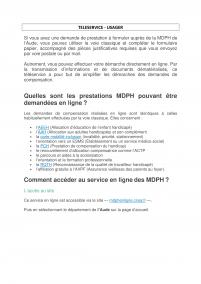MDPH : procédure téléservice Publié le 18 mars 2020 Procédure téléservice (417.4 Ko) Télécharger Préc. Retour à la liste Suivant